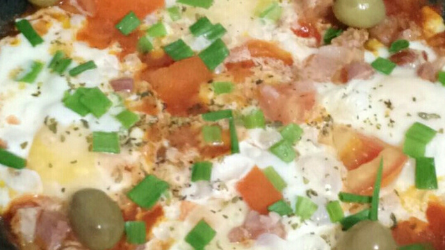 Deixar o molho esquentar e colocar, delicadamente os ovos de maneira que fiquem como ovos estrelados.