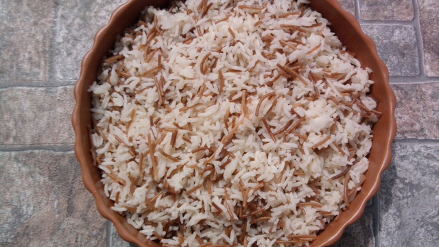 Depois que estiver dourado, acrescente o arroz, já lavado e escaldado, misture um pouco e adicione a água e o sal.