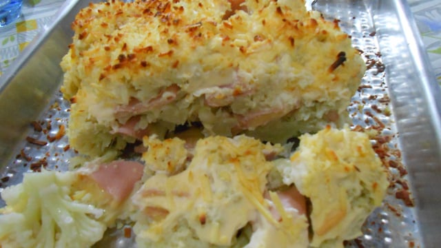 Depois passe a maionese por cima e entre a couve-flor.