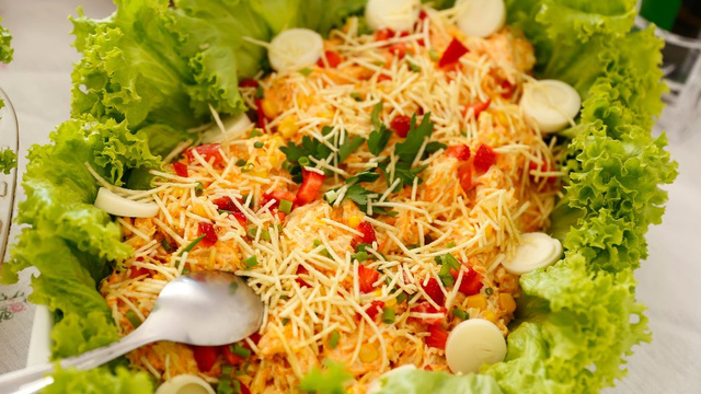 Coloque todos os ingredientes numa saladeira, tempere com o sal e a pimenta-do-reino e misture a maionese.