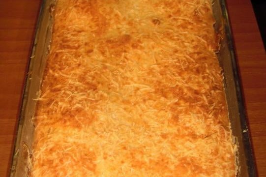 Em uma travessa untada e polvilhada despeje metade dessa massa, coloque o recheio de sua preferência e cubra com a outra metade da massa, se desejar, polvilhe com queijo ralado.