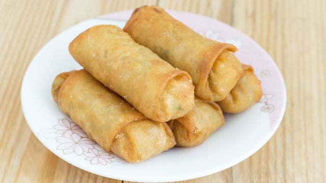 Você vai precisar de uma mistura de farinha com um pouquinho de água, como se fosse uma colinha para selar os harumakis.