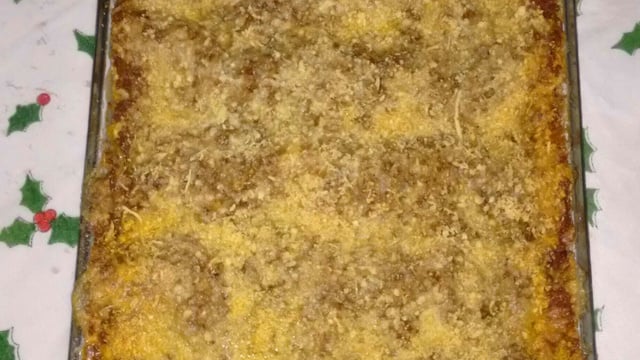 Termine com o molho à bolonhesa e polvilhe queijo parmesão ralado.