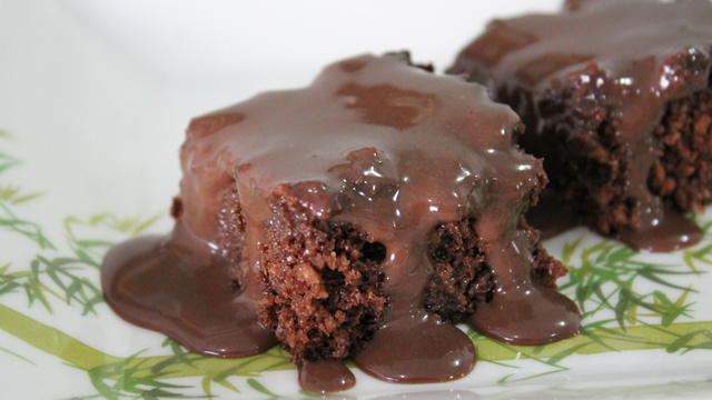 Retire o bolo da forma, coloque a cobertura e cubra com o granulado.