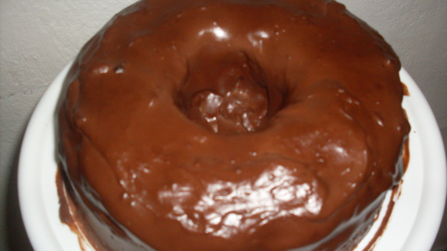 Neste momento deve ser coberto com o creme de chocolate e servir.