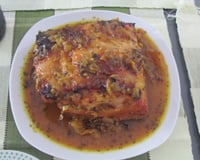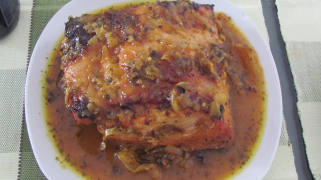 Colocar no forno (fogo bem baixo) coberto com papel alumínio e deixar aproximadamente 1 hora, ou até que espetando a faca perceba que sai água e não sangue.