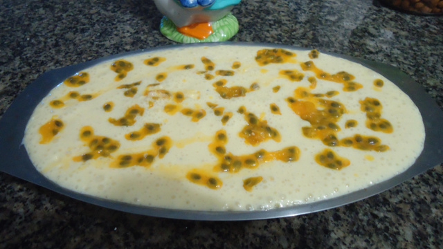 Coloque tudo no liquidificador, bata até as sementes do maracujá ficarem bem trituradas, se preferir sem as sementes. Faça antes um copo de suco e misture tudo no liquidificador. Leve para gelar.