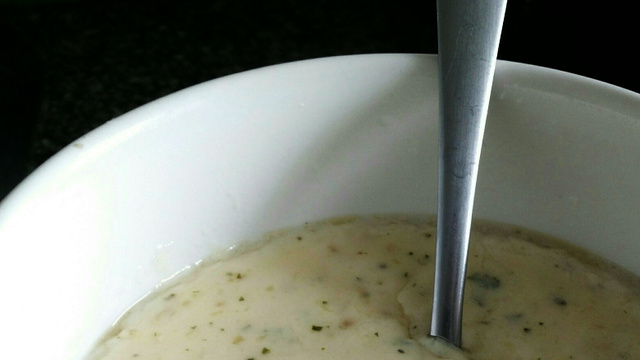 Tire a panela do fogo e adicione o leite, mexa durante uns 5 minutos e adicione o queijo, mexa até engrossar.