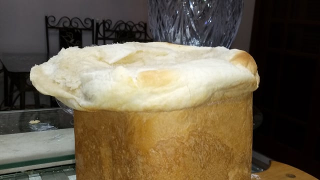 Coloque todos os ingredientes na panificadora, programe-a para preparar o pão em 3 horas, escolha a cor clara para a casca.