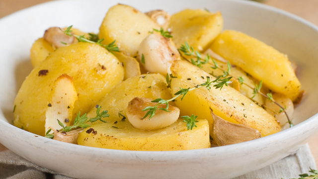 Cozinhe as batatas de modo que ainda fiquem firmes para cortar em rodelas grossas.