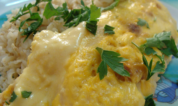Jogue essa mistura por cima do filé de frango.