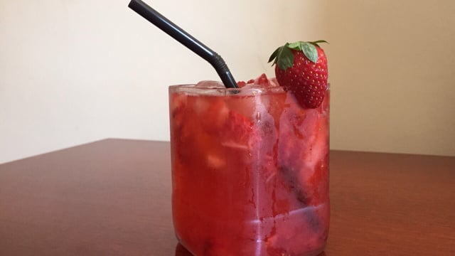 Depois coloque os morangos e espremas até que o caldo dos morangos fique cremoso com o açúcar.