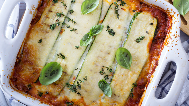 Salpicar sal nas fatias de abobrinhas e deixar po 10 minutos aproximadamente. Espremer para retirar o excesso de líquido. Misturar o queijo cottage com sal, a noz-moscada, a salsa e a cebolinha. Diluir o molho de tomate básico com água. Montar a lasanha em camadas, peito de peru e o queijo cottage. Repetir as camadas até a finalização dos ingredientes. A última camada deve ser de molho de tomate. Cubra com a mussarela e leve ao forno para gratinar levemente. Bom apetite.