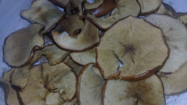 Descasque as maçãs, retire o miolo, corte-as em tiras ou rodelas.