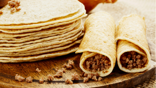 Umedeça um pano de prato e vire as panquecas já assadas, recheie com a carne moída.