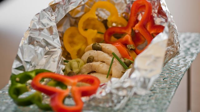 Feche o papel alumínio como um envelope, tendo cuidado de não deixar nem um orifício.