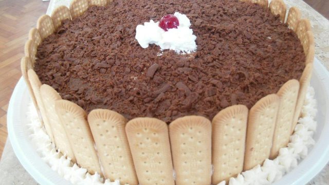 Jogue em cima do biscoito todo o creme e em cima forre mais uma camada de biscoito (também molhado com a essência) e leve ao freezer por 1 dia.