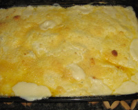 Em um refratário untado com manteiga, coloque uma camada de creme distribua por cima os filés e a banana frita.