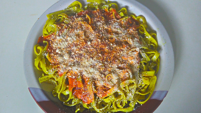 Cubra o macarrão e sirva quente, com queijo a gosto.
