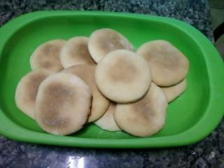 Esticar a massa com o rolo com espessura aproximadamente de 1 cm e cortar com copo americano ou cortador próprio para biscoitos (sempre aproveitando os retalhos).