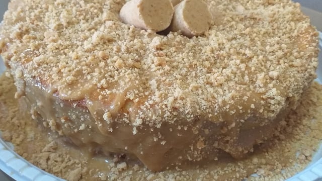 Misturar os ingredientes, menos o creme de leite, as paçocas devem estar esfareladas.