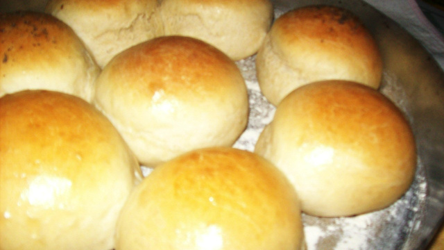 Esquente o leite no micro-ondas por cerca de 25 segundos, até que ele fique morno. Misture o fermento e 150g de farinha com o leite, cubra e deixe descansar num lugar quente por cerca de 30 minutos (pode ser próximo ao forno ligado). Aqueça levemente a água e misture com o açúcar e o sal. Pegue um dos ovos, bata a clara em neve e misture com a gema, a água e o restante da farinha. Misture bem e em seguida adicione a massa fermentada. Sove por cerca de 5 minutos e adicione a margarina derretida. Sove bem por mais 20 minutos. Caso a massa fique muito pegajosa, adicione mais farinha aos poucos, até que ela comece a desgrudar das mãos. Coloque a massa numa vasilha e cubra, deixe descansar num lugar quente por cerca de 40 minutos ou até dobrar de tamanho. Separe a massa em partes iguais, faça bolinhas e coloque-as afastadas numa assadeira levemente enfarinhada. Pincele o outro ovo sobre os pães. Você pode salpicar orégano ou aveia sobre os pães se quiser. Leve ao forno pré-aquecido a 190ºC por cerca de 25 minutos ou até os pães dourarem. Dica: Se você quiser, pode rechear os pães antes de assá-los, use presunto, queijo, azeitonas e tomate (sem sementes).