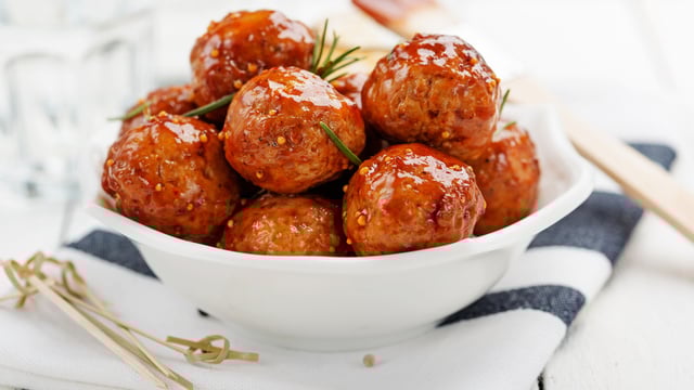 Junte 300 g de carne moída, 1/2 cebola ralada, 1 dente de alho amassado, 1/2 xícara de chá de aveia em flocos, tomate e tempere com sal e pimenta do reino a gosto. Misture bem. Modele as almôndegas tomando como porções 1/2 colher sopa. Coloque-as em uma assadeira untada, regue com azeite e deixe até dourar. Retire as almôndegas e enfeite com folhas de alface. Você também pode cozinhá-las, coloque 1 lata de molho de tomate pronto em uma panela com 1/2 xícara de água. Cozinhe por aproximadamente 20 minutos com panela tampada e mexendo sempre, com cuidado para não desmanchar as bolinhas. Bom apetite.