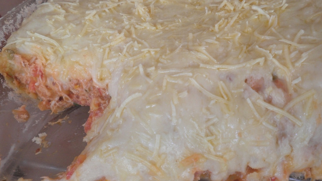 Por cima polvilhe queijo ralado, leve ao forno para gratinar.