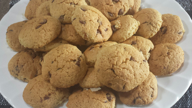 Com a massa já misturada, jogue as gotas de chocolate e misture-as à massa (como disse, quanto mais gotas melhor, portanto, fica a gosto próprio).