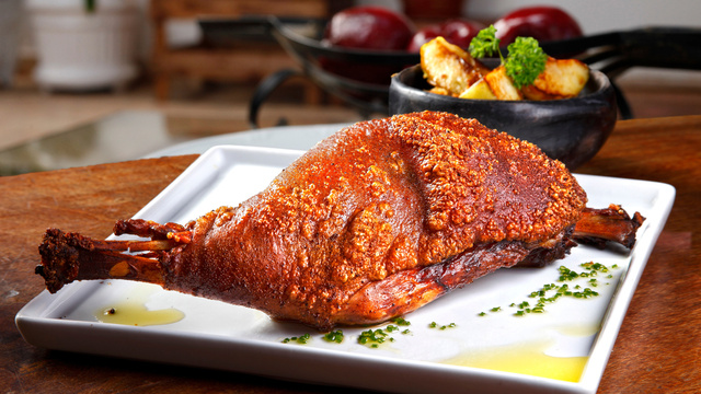 levar ao forno para assar, com a parte do couro para cima, coberto com papel alumínio ( 1 hora para cada k de carne), em fogo médio.
