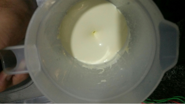 Em um liquidificador coloque todos os ingredientes e bata até ficar homogêneo e der ponto de maionese, ou seja, fique parecida com a maionese industrializada.