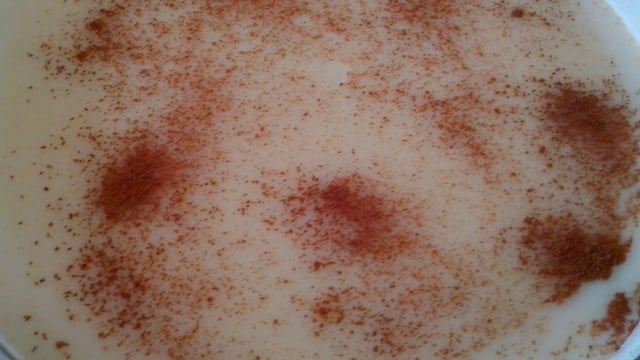 Coloque em uma travessa polvilhe canela em pó, leve para gelar por 2 horas ou sirva morno que também é muuito bom.