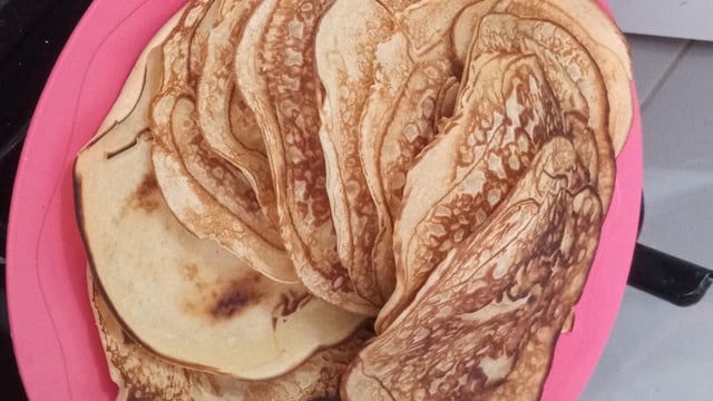 Em seguida em uma frigideira coloque um pouco de margarina, quando estiver bem quente coloque duas colheres de sopa da massa e deixe fritar.