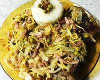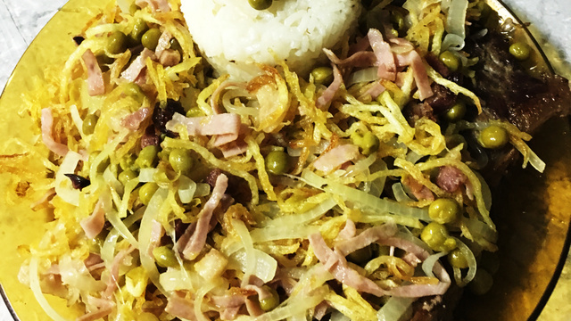 Junte todos os ingredientes já preparados e coloque em cima dos bifes.