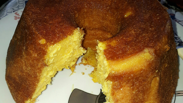 Bater todos os ingredientes no liquidificador e colocar em uma forma untada com óleo, farinha e canela.