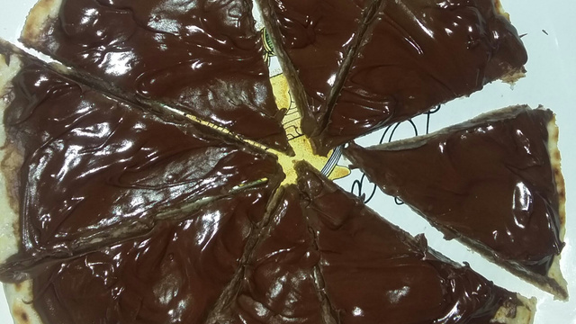 Quando perceber que ela ficou pronta de um lado (ela solta da frigideira e já apresenta diversos pontos secos, mas não queimados), desligar o fogo e virar a massa para preparar a cobertura na parte que já está assada.