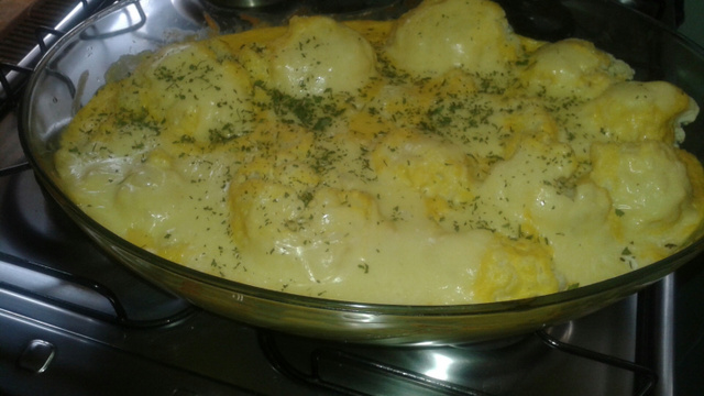 Unte uma forma de vidro e coloque os buquês da couve-flor.